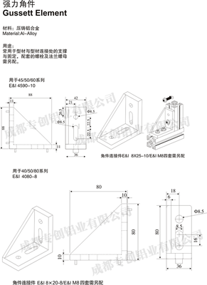 常用于型材與型材連接處的支撐與固定,配套的螺栓及法蘭螺母需另配。