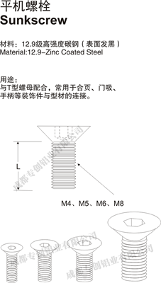 與T型螺母配合,常用于合頁、門吸、手柄等裝飾件與型材的連接。
